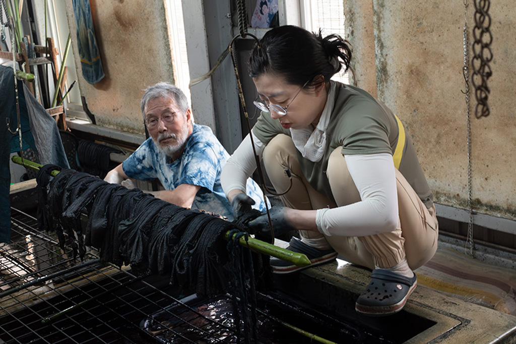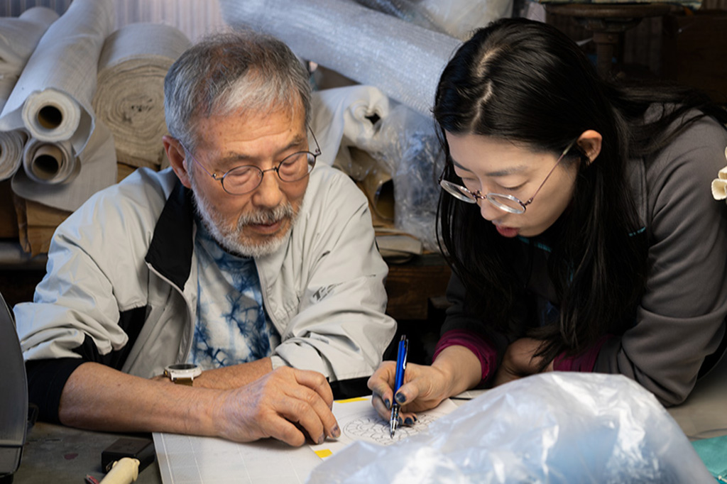 工場で、美智子さんは先生のことを「社長」と呼ぶ。相談しながら進める製造工程。古庄染工場では、親子分業制だと言う。美智子さんが染め、先生が仕上げる。親子でありながら、職人同士の強い信頼関係があった。